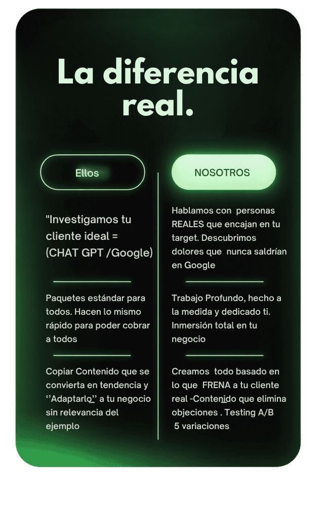 → Recién independiente → Poco presupuesto en mercado saturado (Miami) → Sin testimonios ni presencia digital → Trabajando solo en oficina → Muchos servicios (15+)